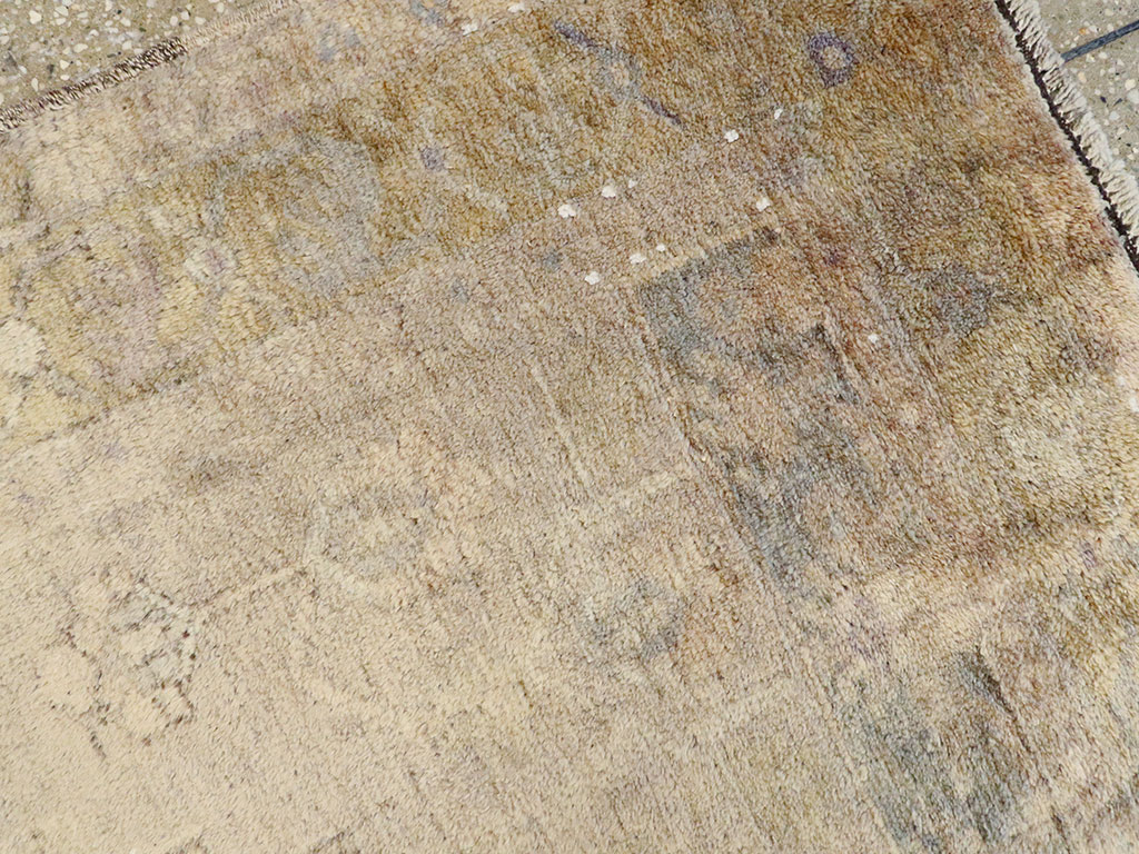 An antique Turkish Oushak rug. Beige, light brown, straw, and tan are all closely in sync on this western Turkish scatter. Only at one end does a pattern firmly emerge comb-like flower on a brown border strip.