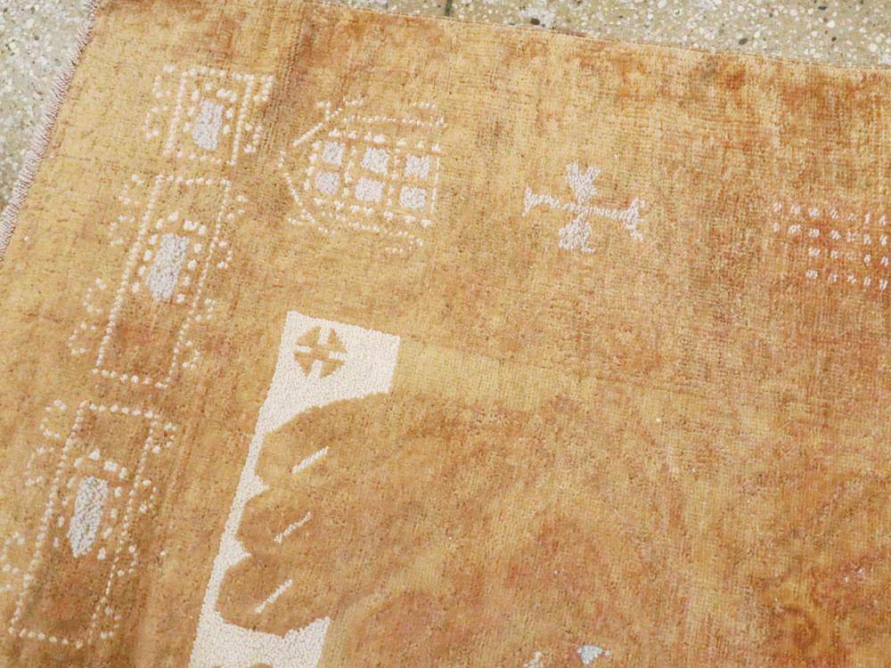 A vintage Afghan Baluch carpet. This is an Afganistan Baluch tribal rug in rust, beige and ivory palette, unlike the usual deep blue, wine red and camel found on almost all of these nomadic creations. Note the peacocks in the corners of the field and the use of sky blue in the end border rectangles.