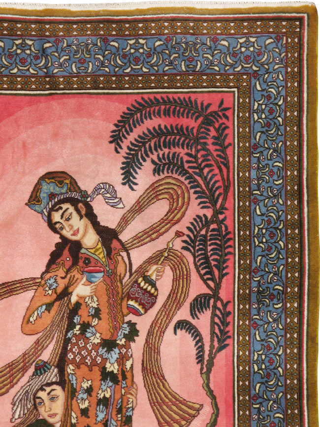 Vintage Persian Tabriz Pictorial Throw Rug, No.23848 - Galerie Shabab
