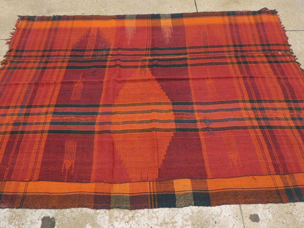 A vintage Persian Textile. This three section woolen cover employs both plaid and lozenge patterns in red, orange, dark brown an deep yellow. A narrow fourth strip has been added at one side.