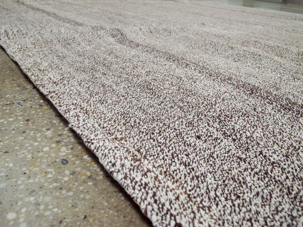 A vintage Turkish Flat-weave Kilim. Two panels of naturally toned wool in browns, beiges and creams are joined to create an abstract, informal modern minimalist composition with a speckled visual texture. Can easily be adjusted in size to fit your needs.